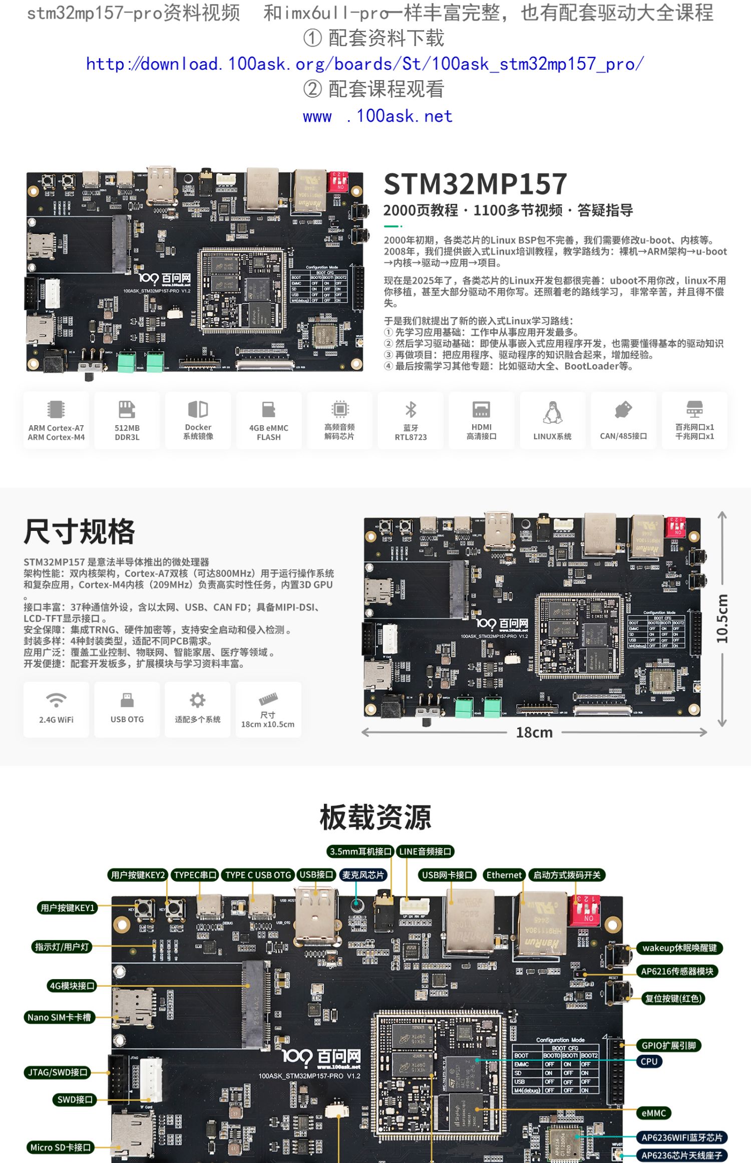 - 下载资料:https://download.100ask.net/boards/St/100ask_stm32mp157_pro/index.html