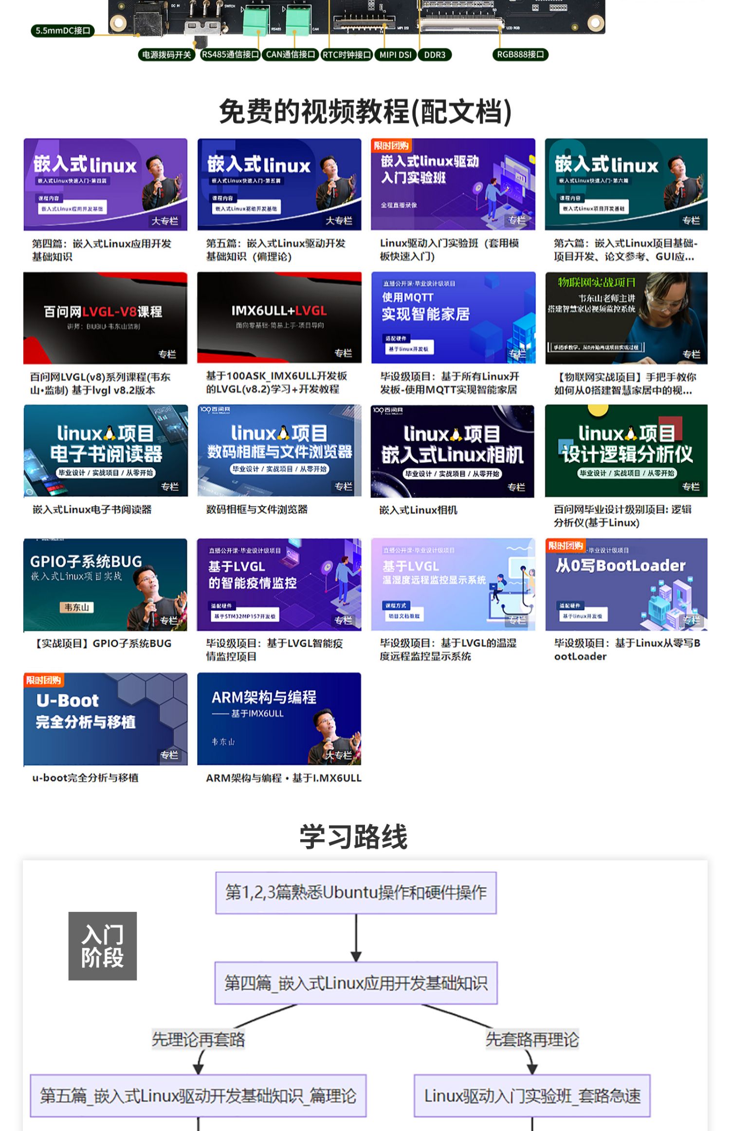 - 开发板配套资料百度云网盘链接:https://pan.baidu.com/s/1Gnh9G8a05LSgHYlohyl93Q?pwd=root 密码:root